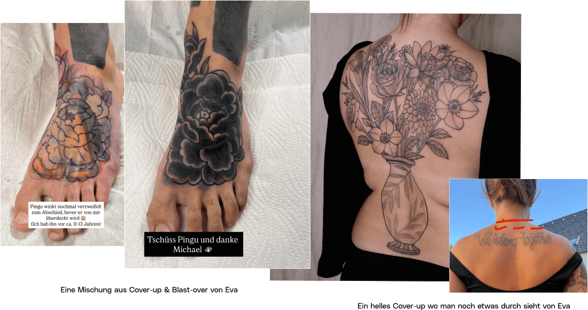 Am besten schickt ihr uns eine E-Mail mit einem Foto eueres alten Tattoos (+ cm-Angabe) und euerem Motivwunsch bzw. grobe Idee (bitte beides), dann können wir euch gleich sagen, ob es funktioniert und wie wir euch helfen können!